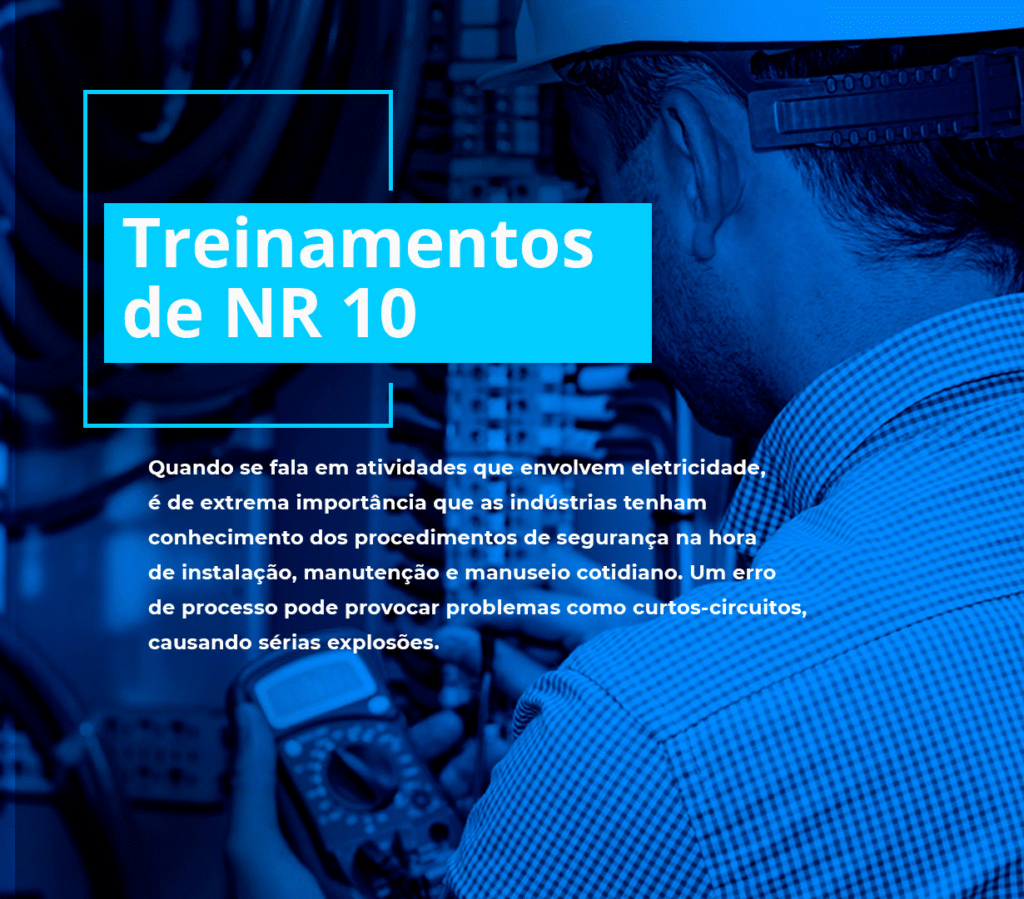 O treinamento NR 10 destina-se a colaboradores ou outros profissionais quaisquer, que se envolvam com todo o tipo de serviço associado às variadas instalações elétricas, sendo que o principal objetivo do treinamento NR 10 é melhorar o nível de segurança e fazer a prevenção dos diversos tipos de acidentes que podem ser causados, relacionados às instalações elétricas. Saiba mais